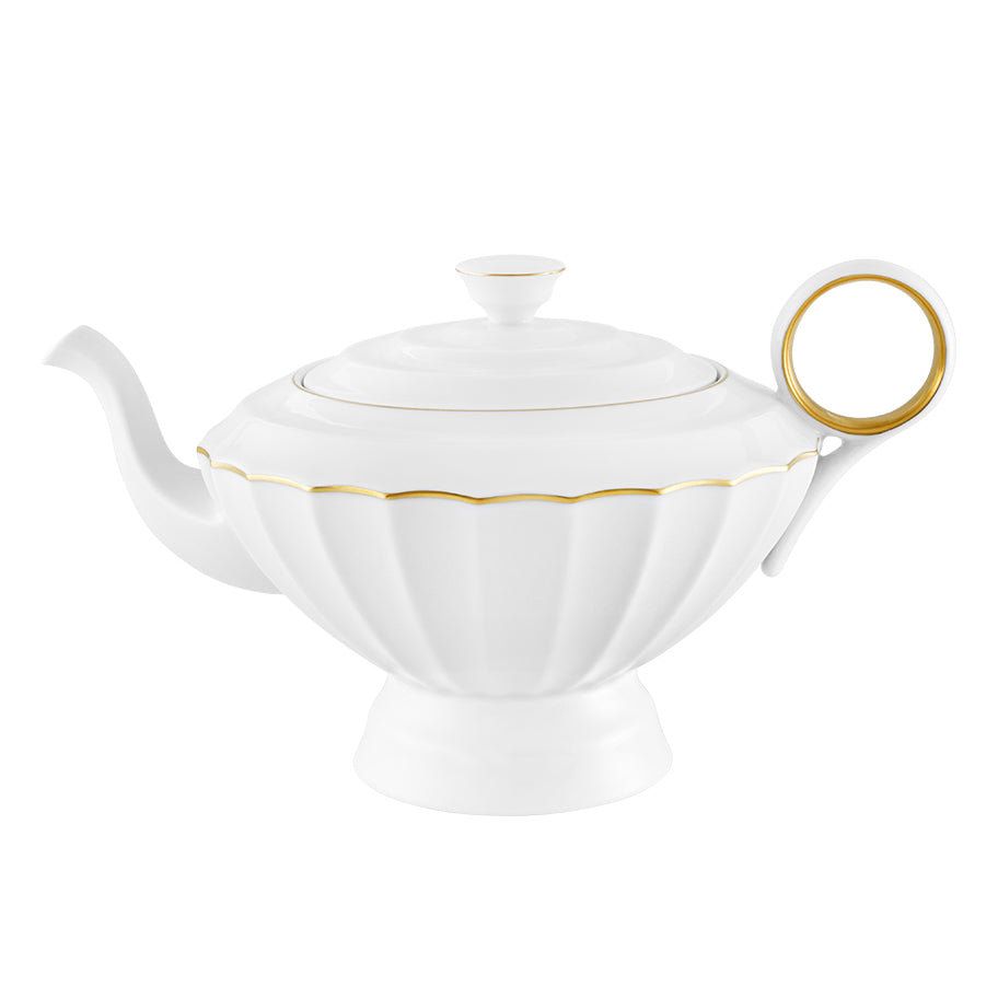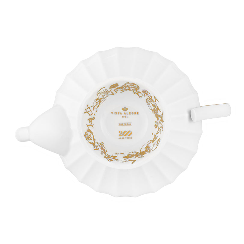 200 Anos reflects Vista Alegre’s constant capacity for renewal, recreating a memory that is as much based on centenary know-how as it is on a dynamic vision of modernity. Combining various aesthetic elements from different eras in the brand’s history, this collection plays with corrugations and fluting, inspired by pieces from different eras in Vista Alegre’s collection. The different scales, which vary from piece to piece, result in a surprising intersection between past and future, reflecting Vista Alegre’s historical trajectory. Delicate matte gold filaments that emphasize the outline of the pieces guarantee their timeless character and prestige, accentuated by the presence of the evolution of the Vista Alegre logo on the back.
