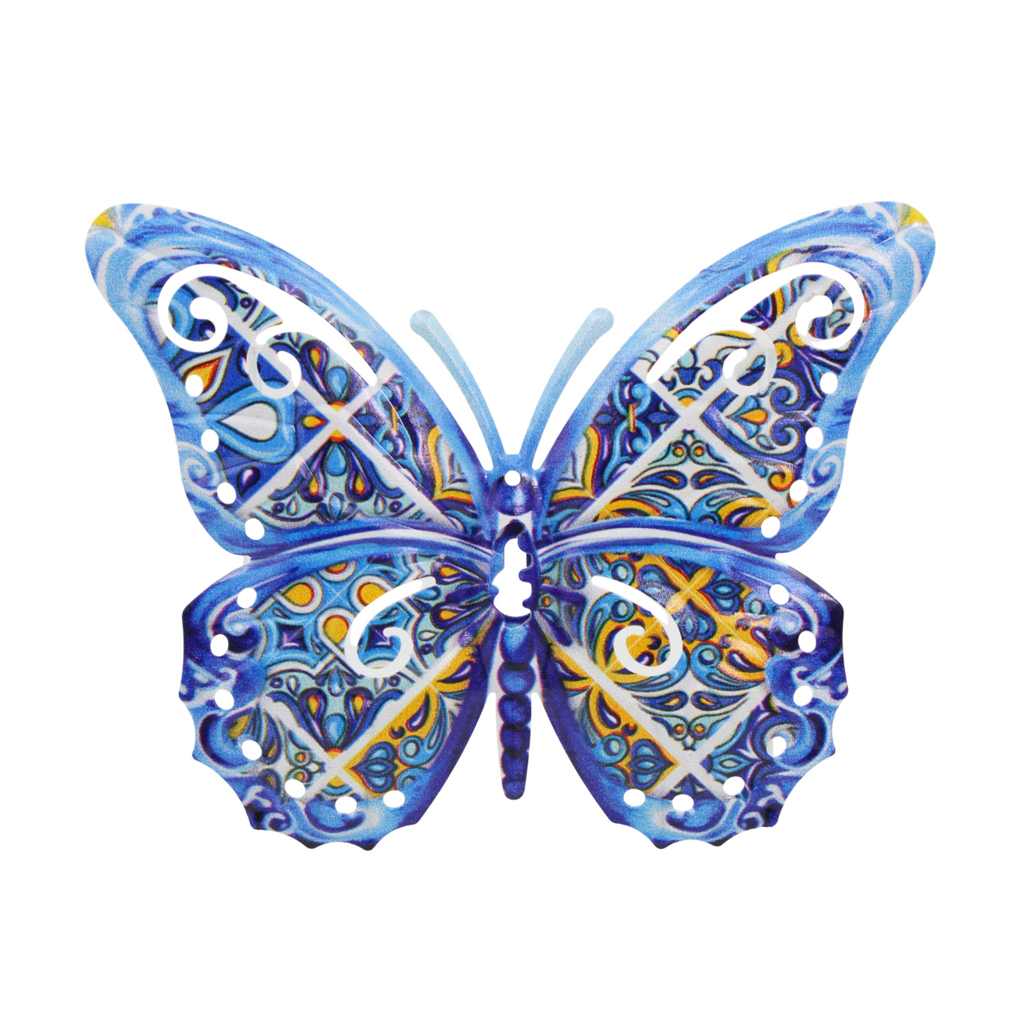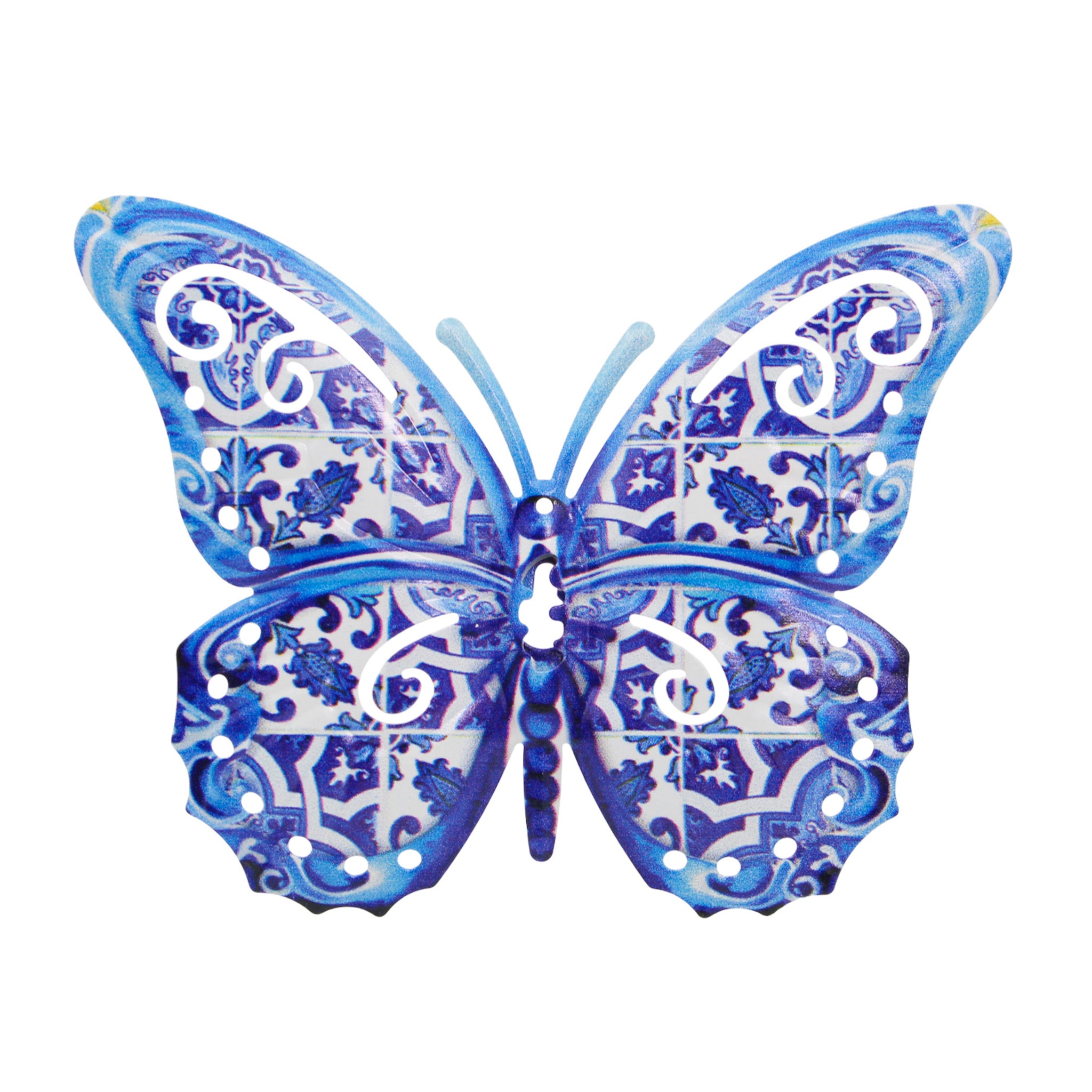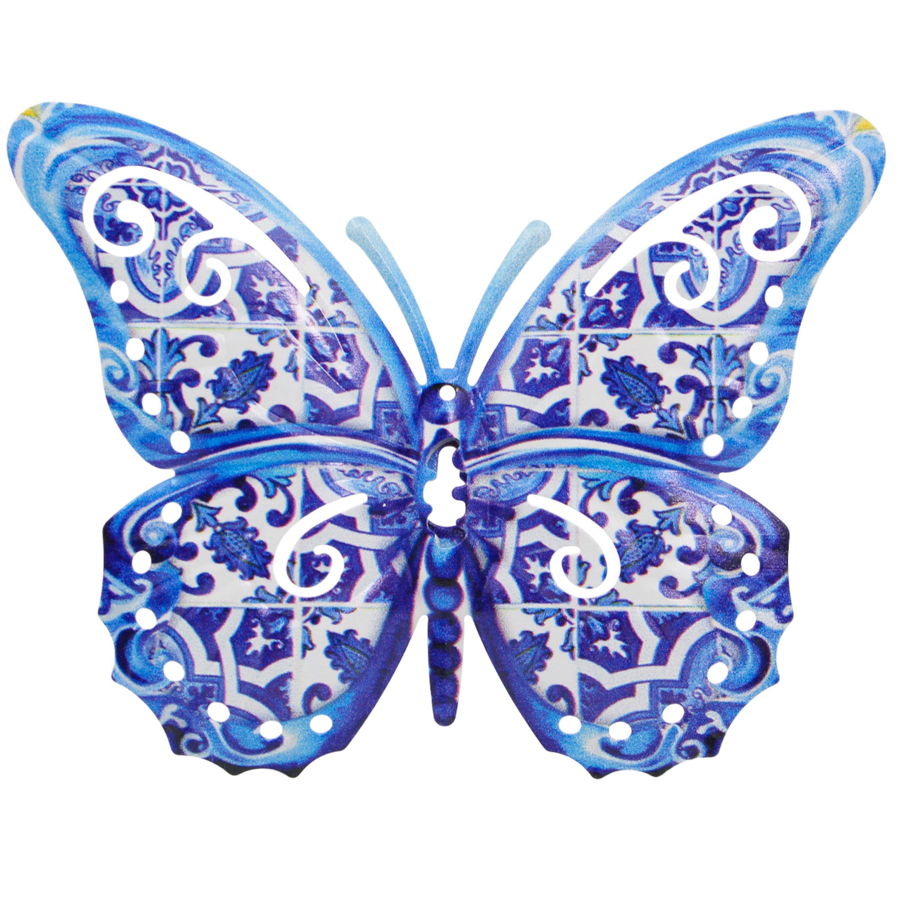 Portuguese Azulejo Metal Butterfly Wall Decor – Blue Tile Design Hanging Accent