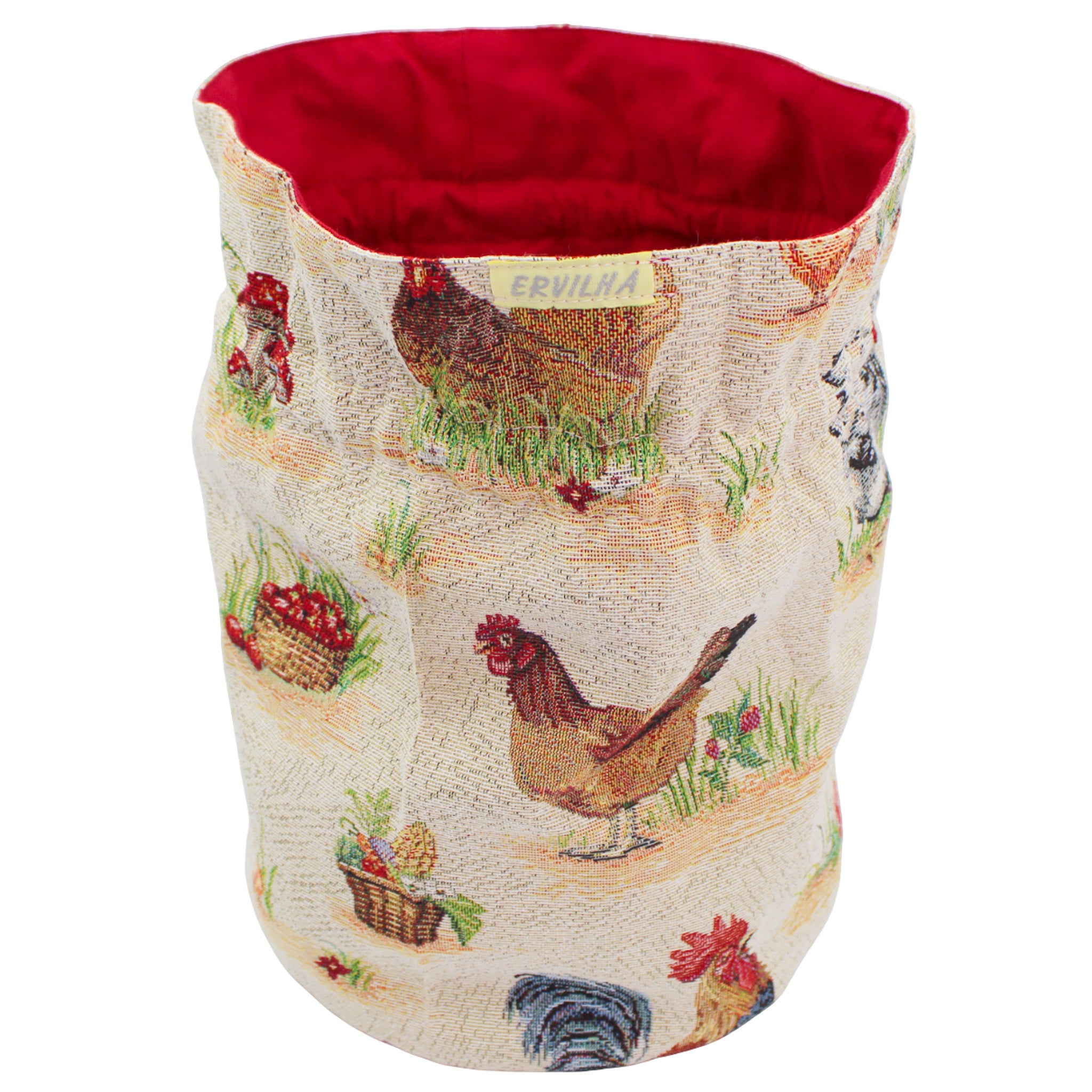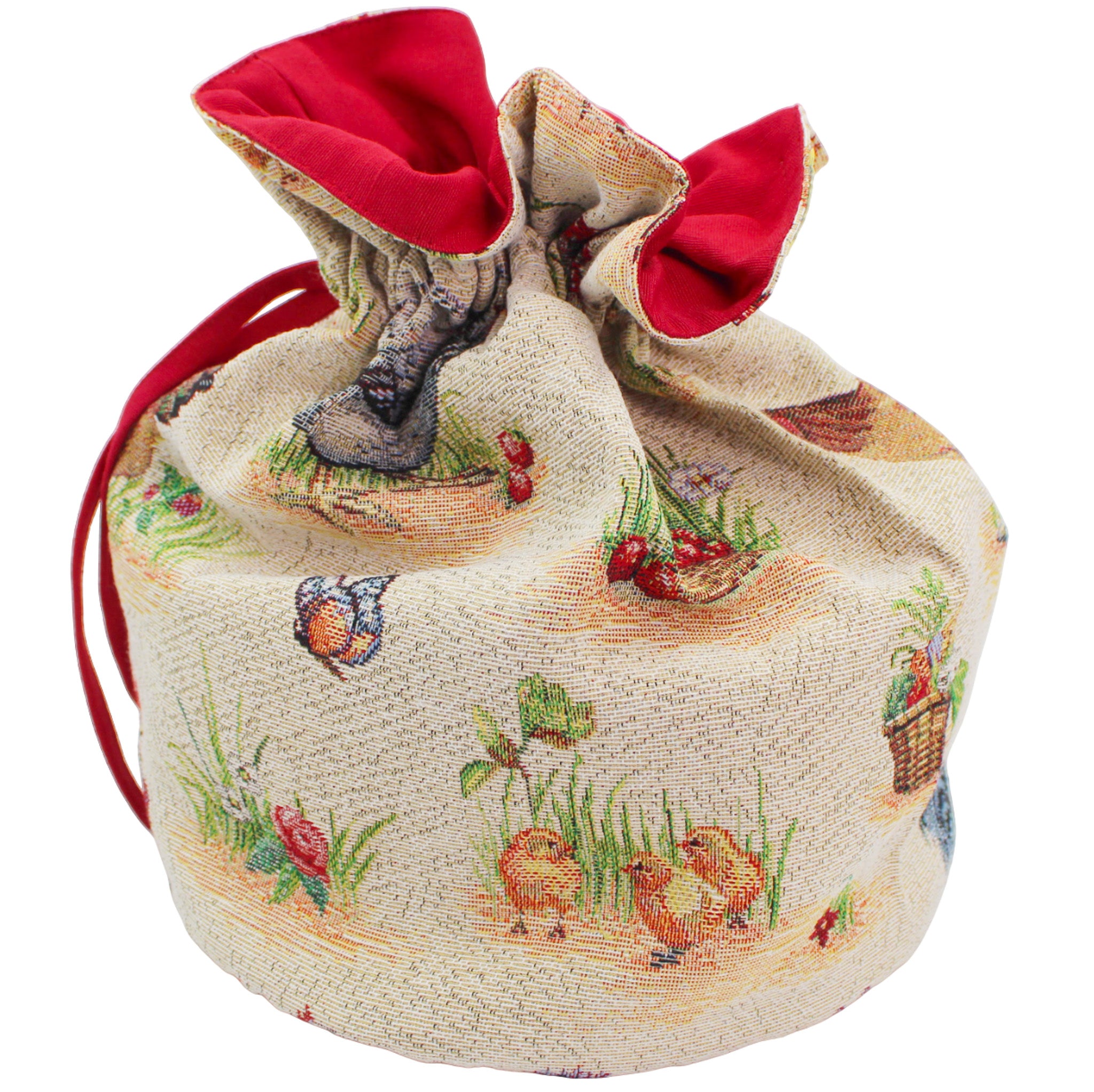 Bring farmhouse charm to your kitchen with this Portuguese-made tapestry bread bag. Crafted with a sturdy cotton-poly exterior, soft padded interior, and a classic rooster design, it keeps bread neatly stored and beautifully displayed. The convenient drawstring closure and two size options make it perfect for everyday use, from fresh loaves to dinner rolls.