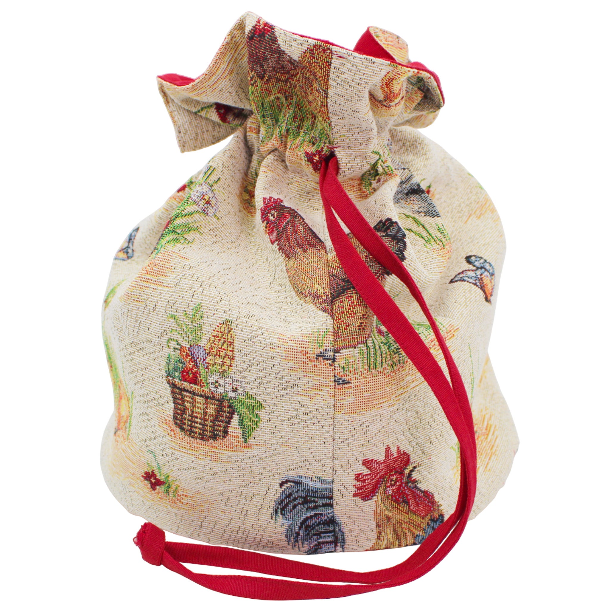 Farmhouse Rooster Tapestry Bread Bag – Kitchen Storage with Drawstring Closure