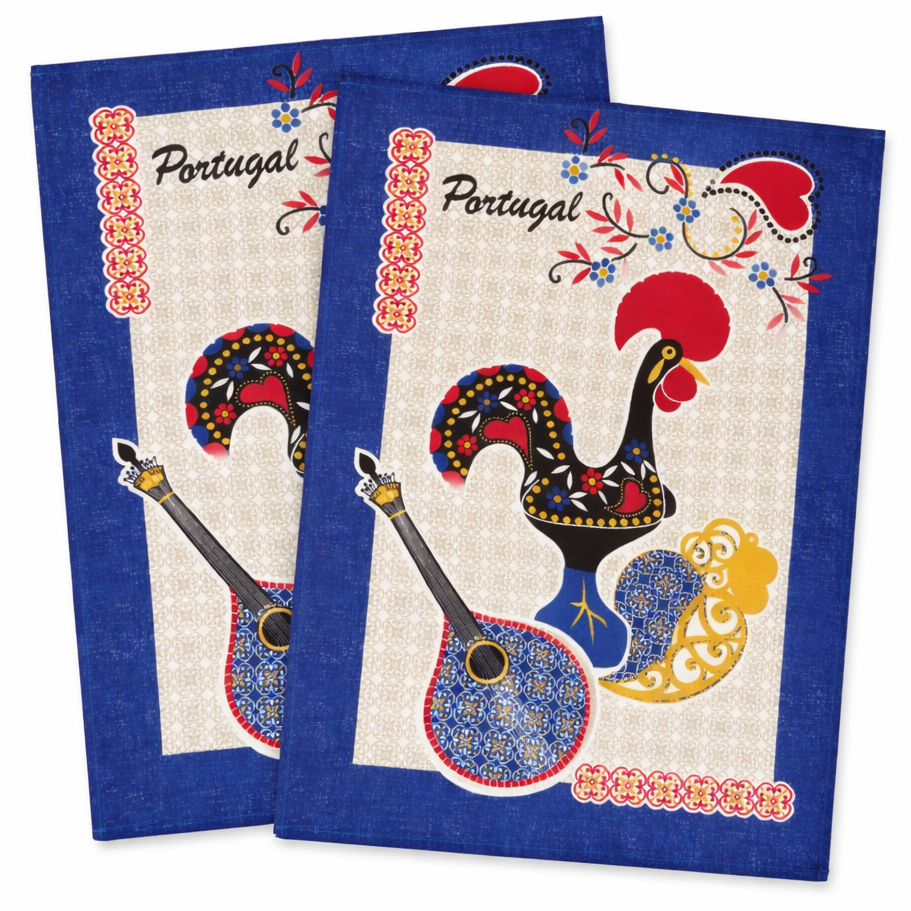 Portuguese Rooster Blue Tea Towels – Set of 2, 100% Cotton Kitchen Towels (26.5" x 19")