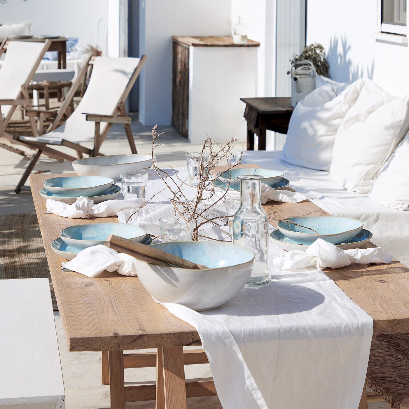 Discover Casafina's organic-shaped collection, Eivissa. The natural curves of the collection are enhanced by its artfully reactive glazes that create perfectly imperfect patterns of beige-sand and sea-blue on the interior. Eivissa showcases a striking interior finish, enhanced by a minimalistic white exterior. Organically-shaped and artfully glazed, no two pieces will ever look the same.