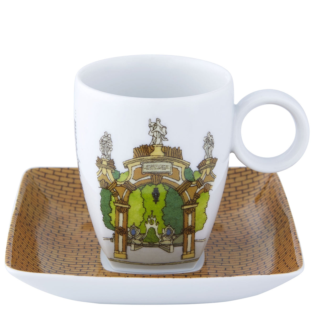 Coimbra's most iconic landmarks find a new home at your coffee table. The Vista Alegre Soul of Coimbra Espresso Set brings together four beautifully illustrated cup and saucer pairs, each depicting a beloved architectural treasure from Portugal's historic university city - baroque doorways, grand chapels, and lush garden gates rendered in rich, painterly detail.
