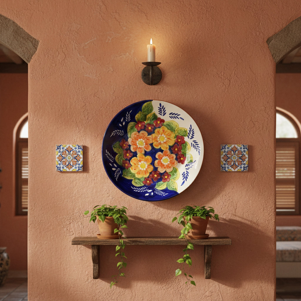 Xarazarte Primavera Large Decorative Plate, Hand-Painted Terracotta