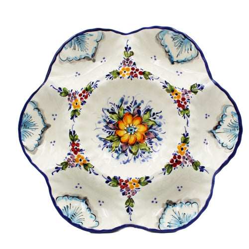 Hand-Painted Traditional Portuguese Ceramic Floral Divided Chip & Dip Platter