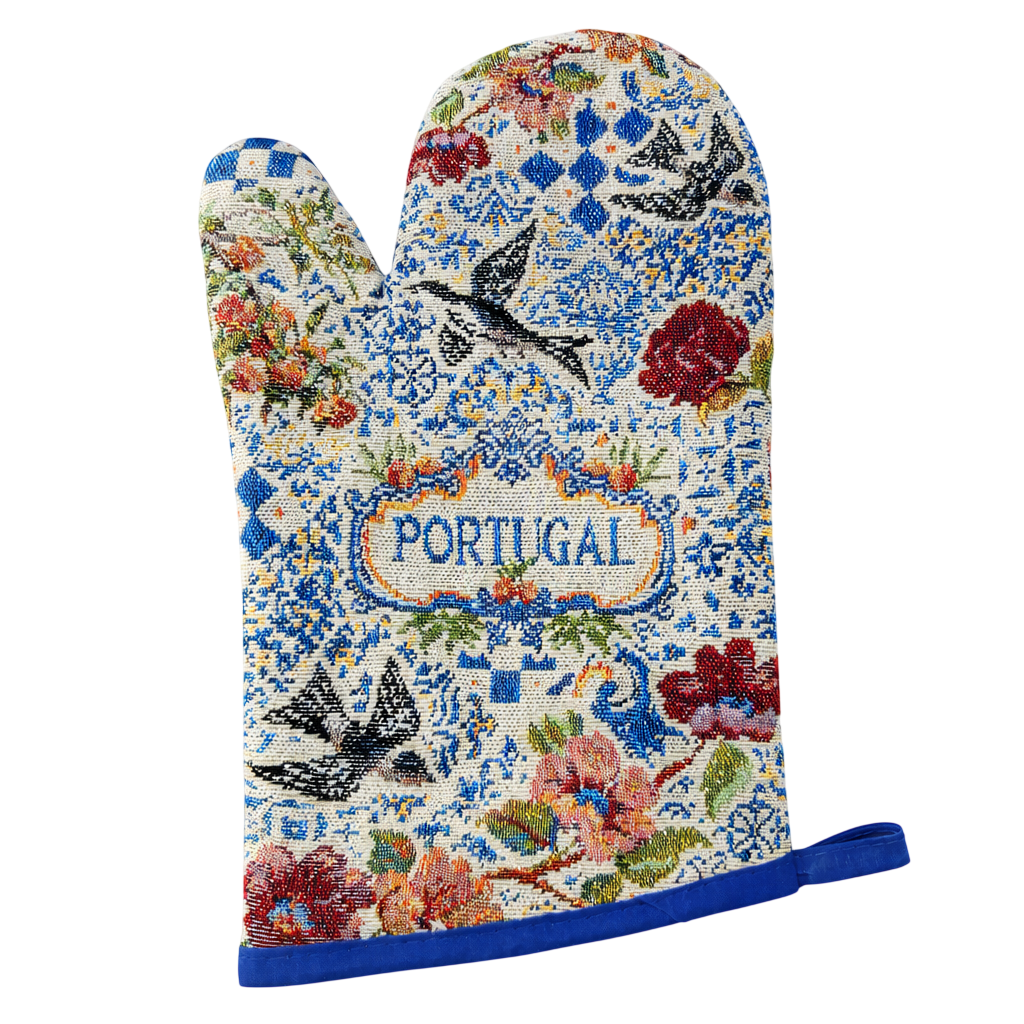 Bring timeless Portuguese charm into your kitchen with this beautifully coordinated oven mitt and pot holder set, inspired by classic Azulejo tile artistry. Featuring elegant swallow birds surrounded by intricate blue tile patterns and vibrant floral accents, this design reflects the warmth and heritage of traditional Portuguese décor while adding a refined, decorative touch to your space.