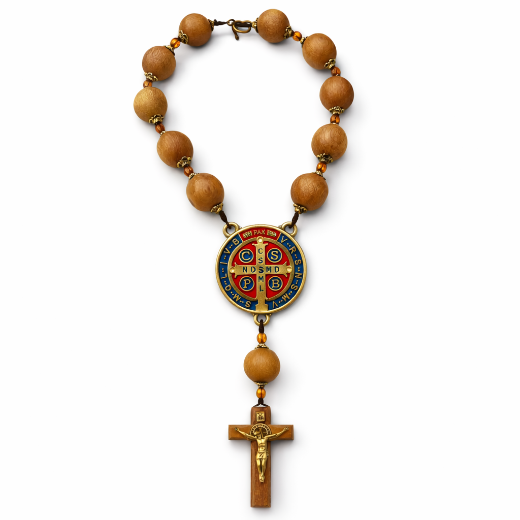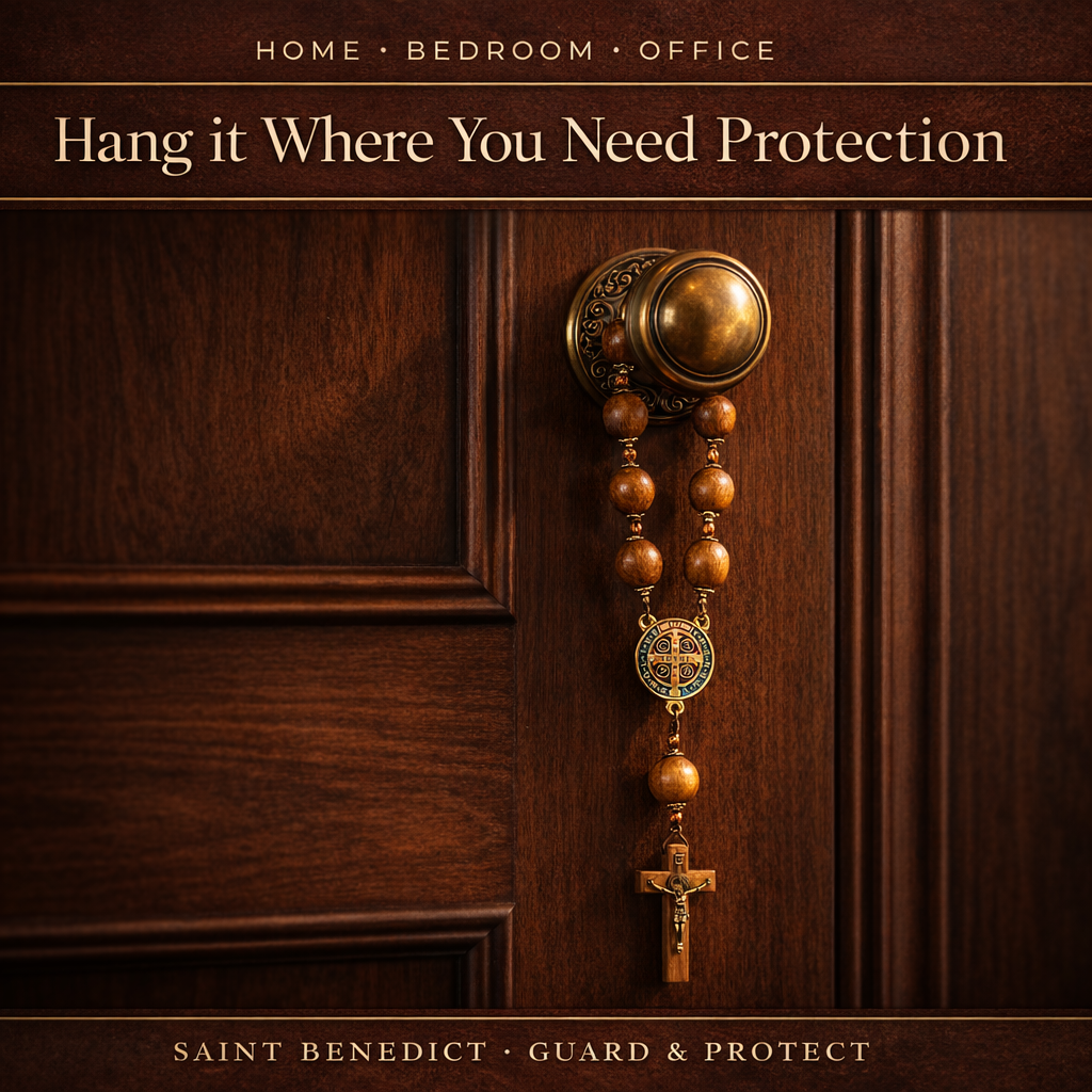 The Saint Benedict Hanging Rosary is more than a beautiful devotional piece — it is a powerful symbol of faith, protection, and peace handcrafted by skilled Brazilian artisans using premium Imbuia wood and traditional Catholic craftsmanship.