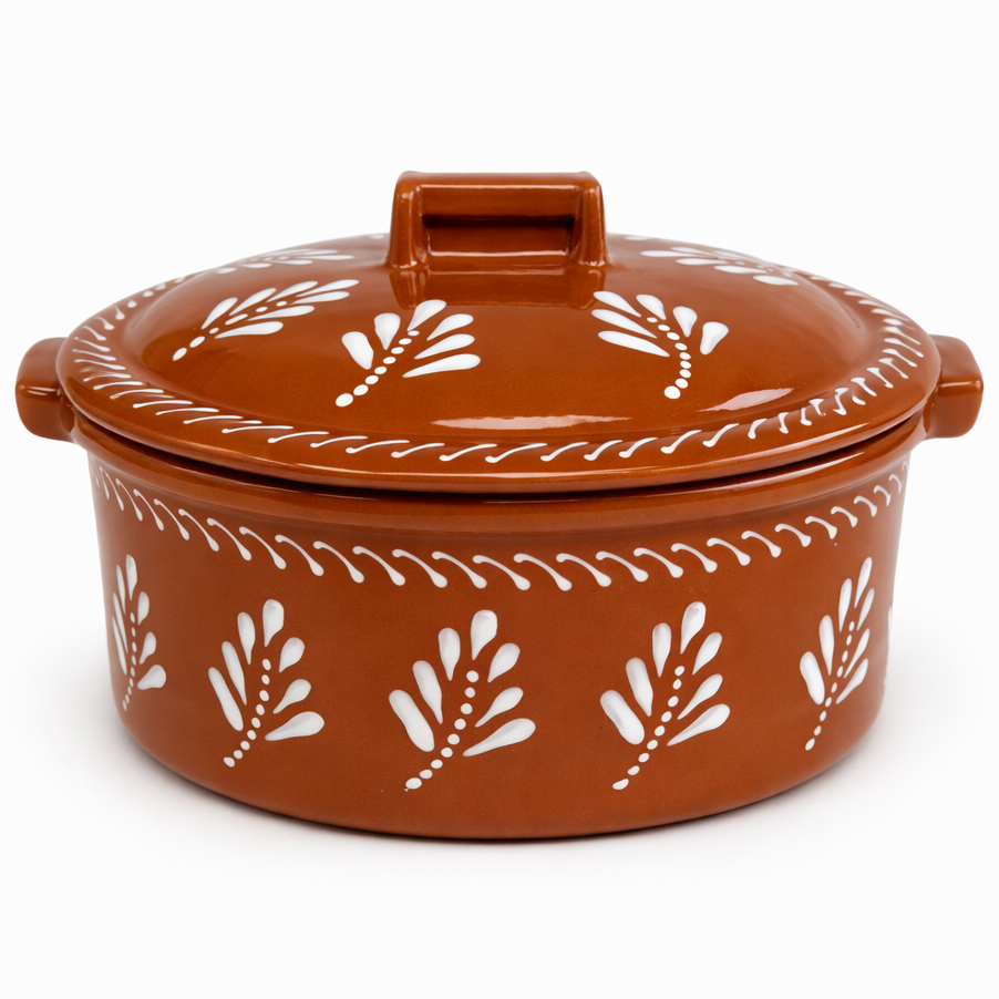 Available in two versatile sizes, this round cooking pot is ideal for preparing soups, stews, rice dishes, beans, and slow-cooked meals. The matching lid helps retain heat and moisture during cooking while offering a beautiful oven-to-table presentation. Whether used for daily cooking or special gatherings, this piece brings heritage, warmth, and artisanal character to any kitchen.