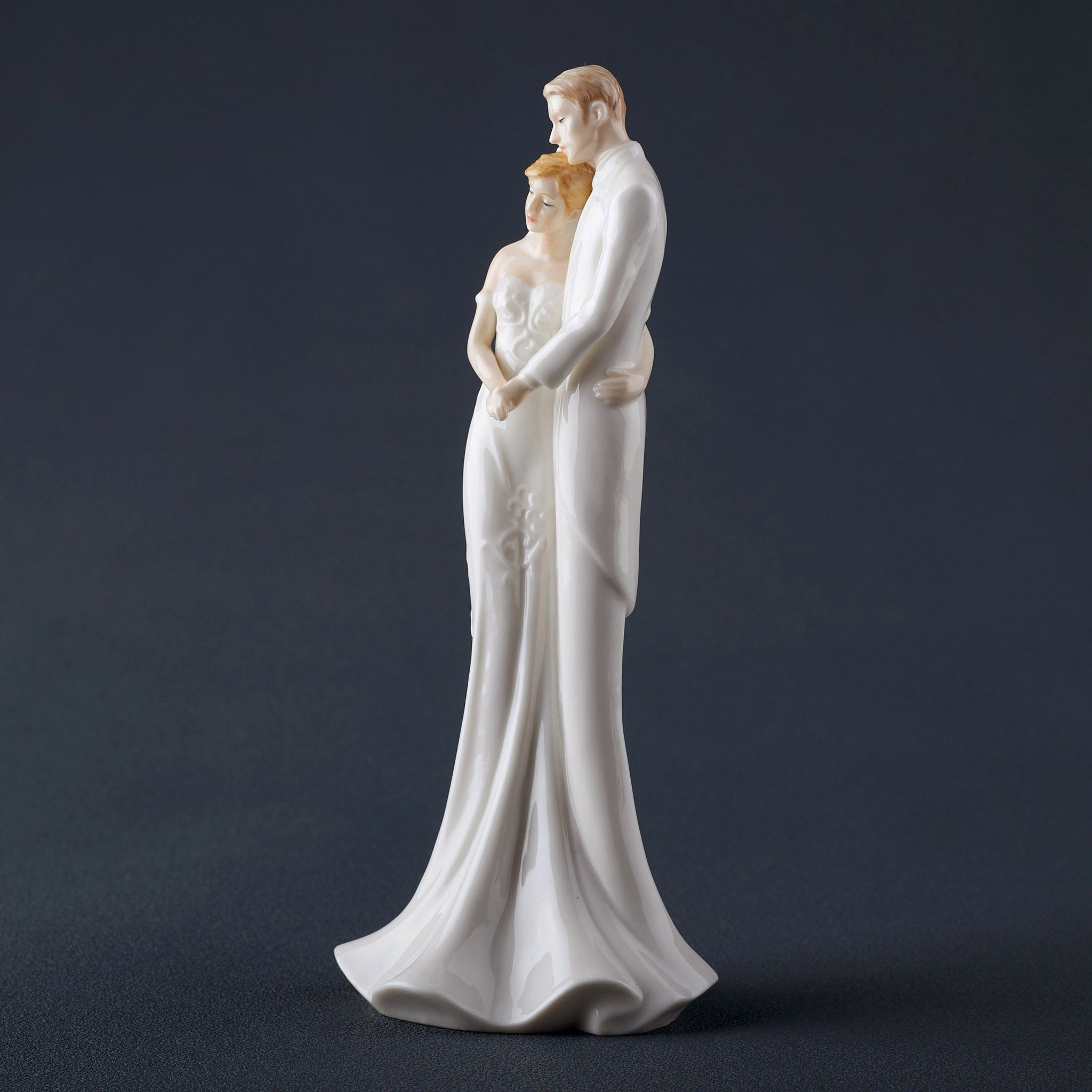 Celebrate everlasting love with this First Dance Bride & Groom Porcelain Figurine. Beautifully crafted from fine porcelain, this elegant statue captures a tender moment between newlyweds as they share a quiet embrace, symbolizing romance, unity, and commitment.